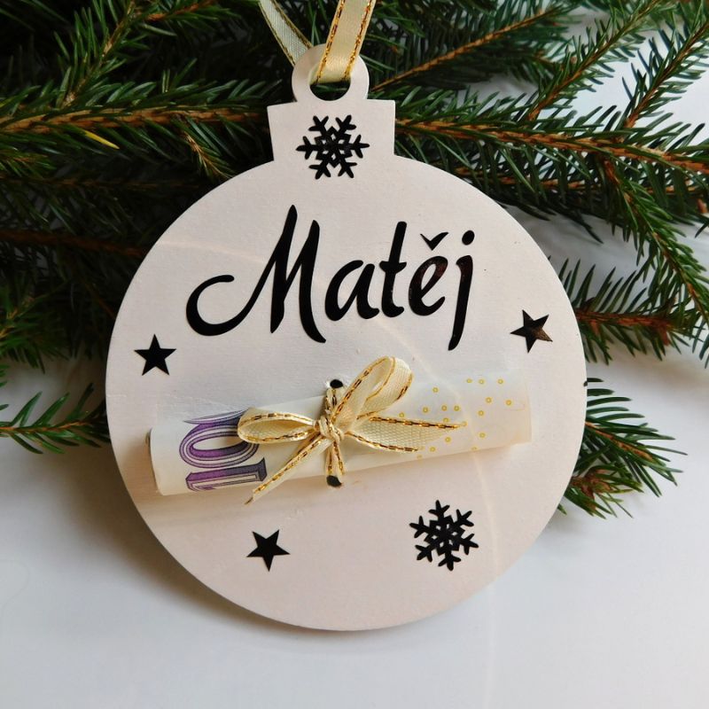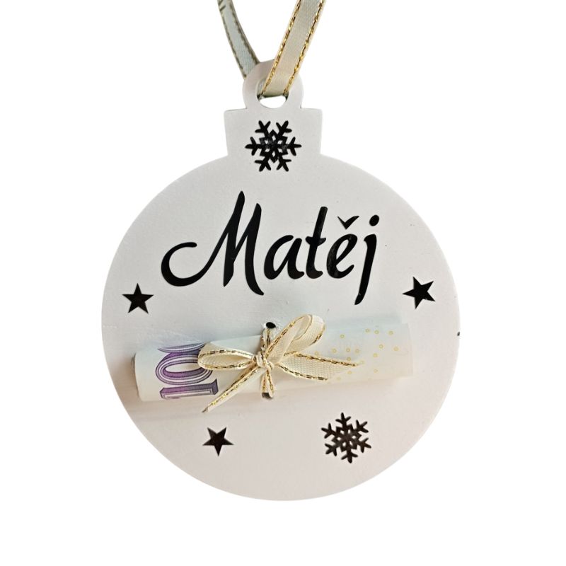 Kapsičku po odebrání finančního obnosu může obdarovaný použít jako vánoční ozdobu na stromeček - stačí zavázat mašličku.