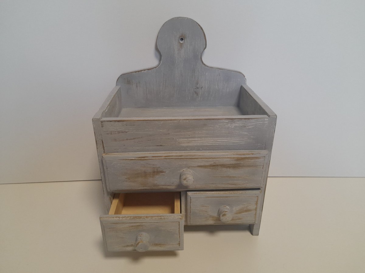 Skříňka je vyrobena z masivního dřeva. Lze ji postavit ale i zavěsit na zeď.