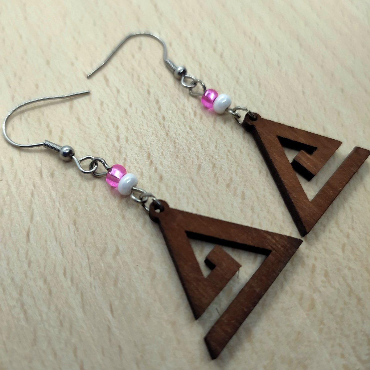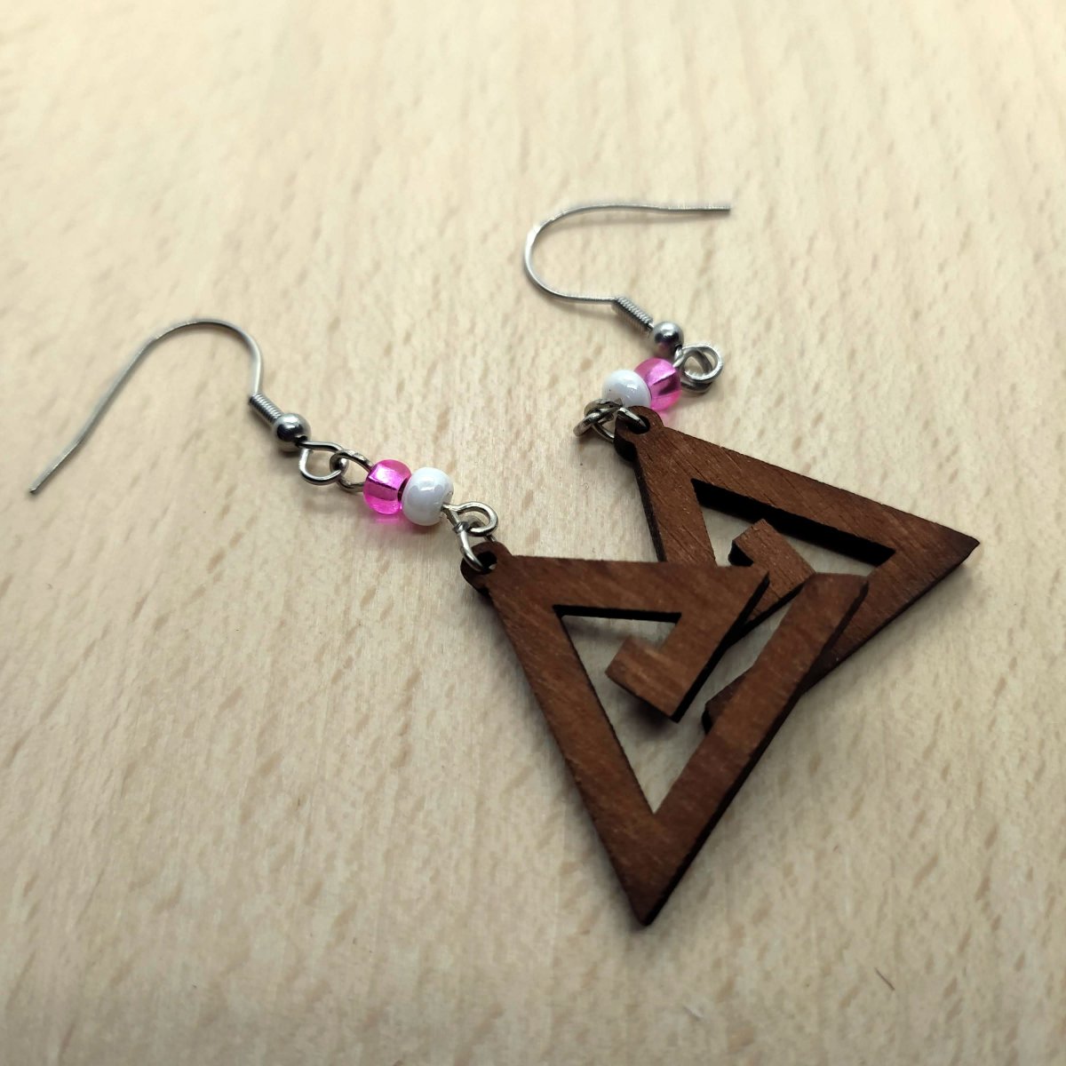 Chcete být originální? Milujete dřevo? Pořiďte si naše dřevěné náušnice ve tvaru trojúhelníků v originální grafice.