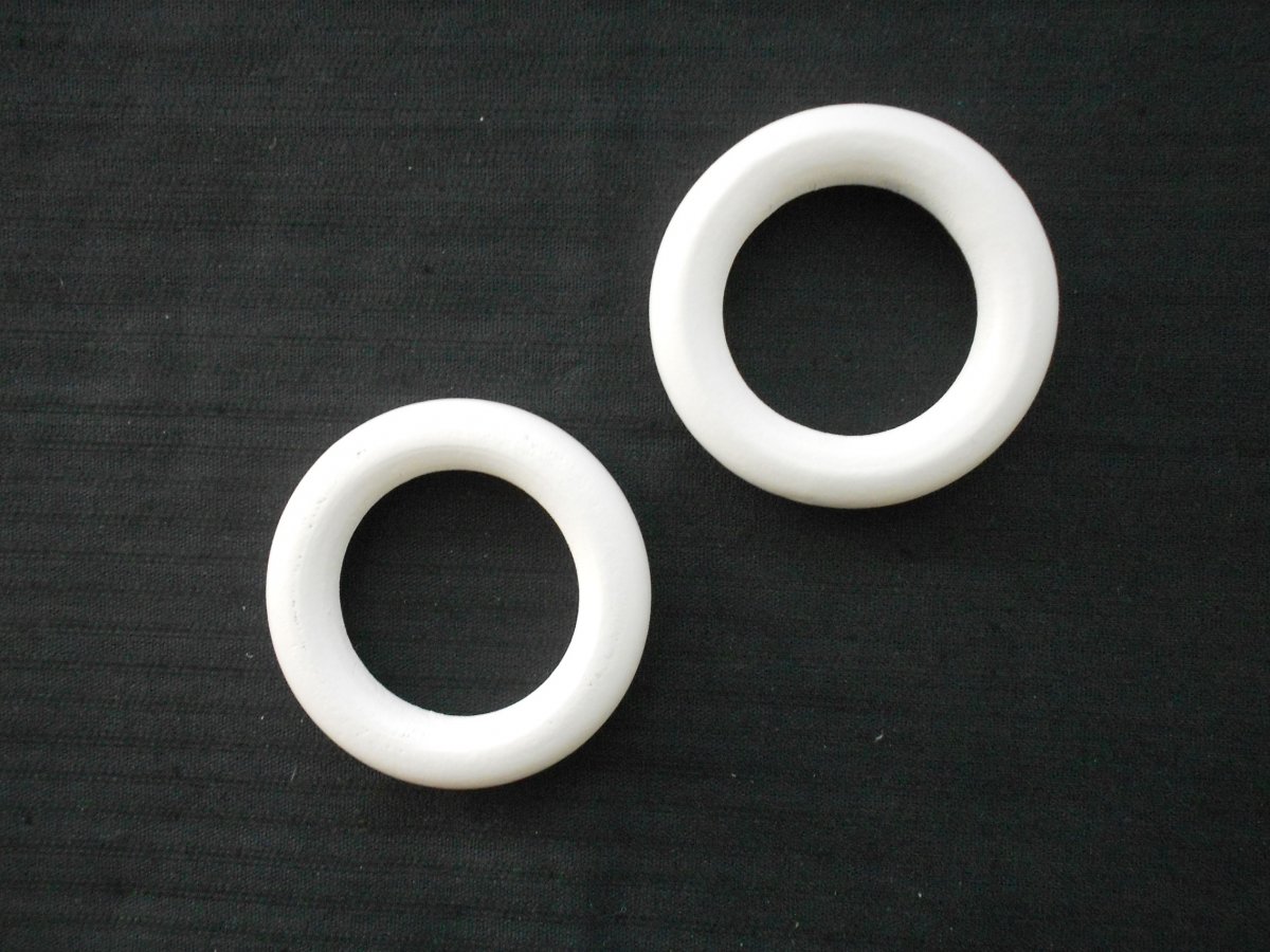 Dřevěné kroužky využijete na výrobu závěsných dekorací a různých druhů vázání šňůr technikou macramé. Skvěle poslouží i na další dekorace, např. na lapače snů. Kroužky jsou lakované, bílé. Sada 2 ks.