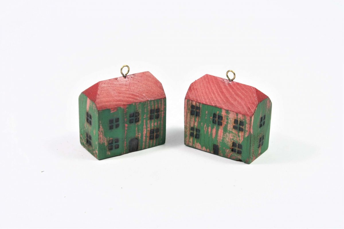 Dřevěný domeček ze smrkového dřeva s ručně vyrobeným očkem z mosazného drátu k zavěšení. Domeček je mořený lihovým mořidlem a následně malovaný akrylovou barvou vhodnou pro styk s potravinami. Dekorace není pouze vánoční ozdobou, ale slouží k pověšení celoročně kamkoliv. Okna a dveře jsou vypáleny vlastnoručně vyrobebenými razníky, což vytvořilo krásný plastický efekt.