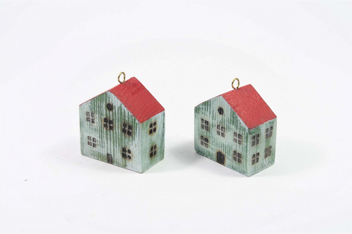 Dřevěný domeček ze smrkového dřeva s ručně vyrobeným očkem z mosazného drátu k zavěšení. Domeček je mořený lihovým mořidlem a následně malovaný akrylovou barvou vhodnou pro styk s potravinami. Dekorace není pouze vánoční ozdobou, ale slouží k pověšení celoročně kamkoliv. Okna a dveře jsou vypáleny vlastnoručně vyrobebenými razníky, což vytvořilo krásný plastický efekt.