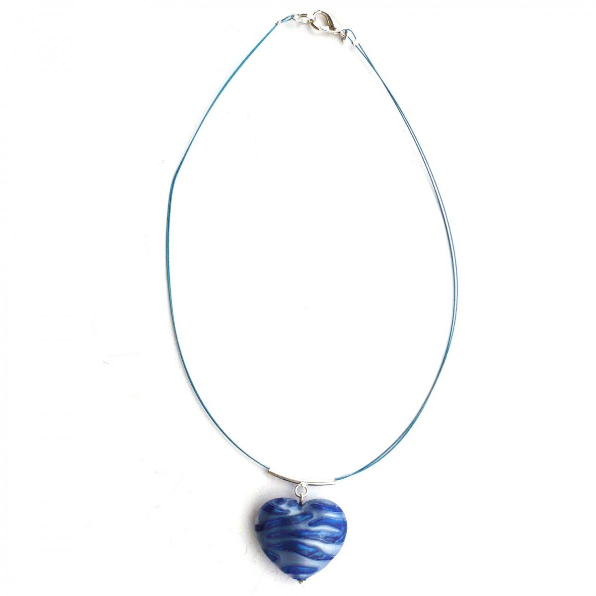 Modré mourované plastové srdíčko je zavěšeno na vlastnoručně vyrobeném ověsu z bižuterního lanka.