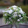 Elegantní květinová dekorace v bílé a zelené barvě. Pokud máte raději pesté barvy, není problém domluvit se na jiné barevné kombinaci. Kvěitny jsou látkové, nepotřebují tedy žádnou péči. Dekorace je zdobená souměrně do všech stran, můžete ji tedy použít kamkoliv do prostoru. Krásná bude v hale, obývacím prostoru, ale i v kanceláři nebo recepci. Rozměry dekorace jsou 35x32cm.