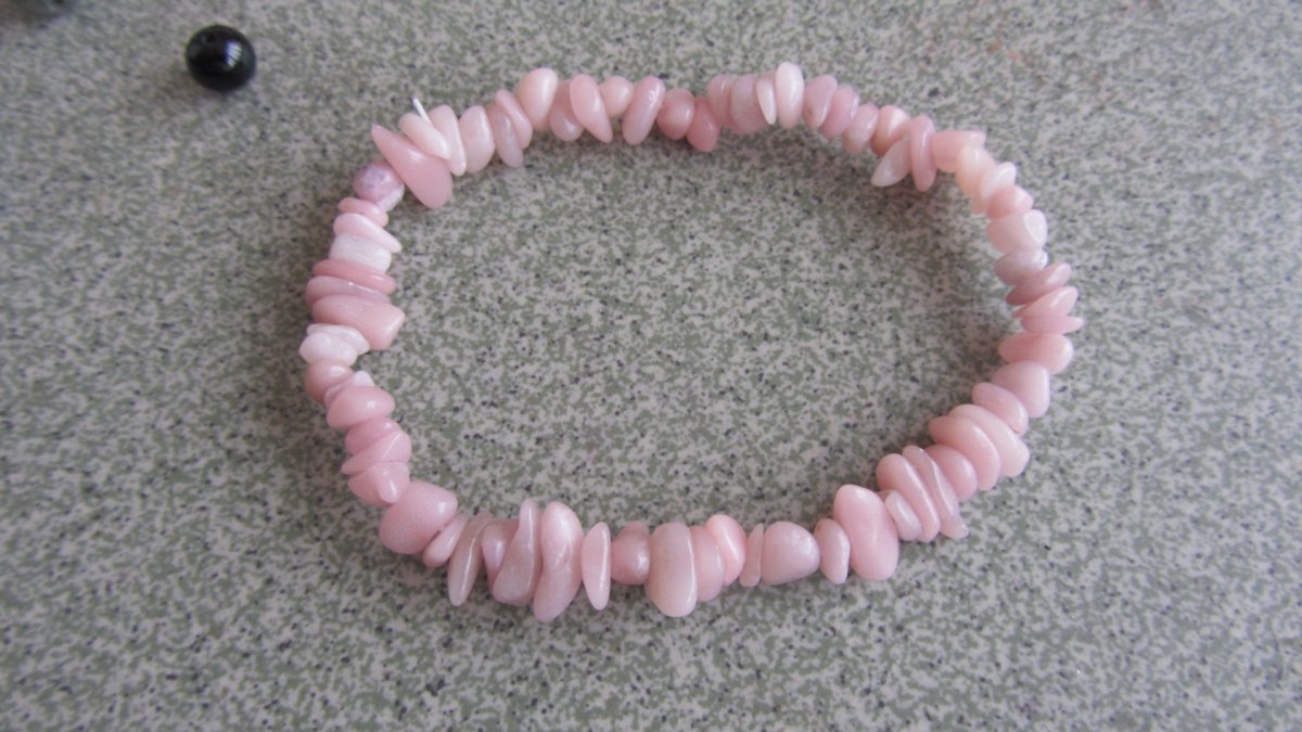 Energetický náramek ze sekaného minerálu Opál. Náramek je navlečen na elastometru, velikost náramku 18,5 cm.