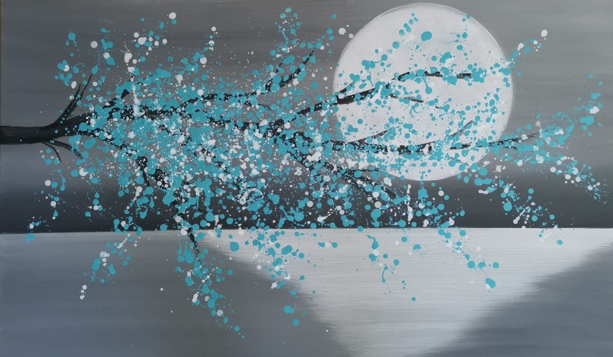 Obraz je malovaný akrylovými barvami na kvalitní bavlněné plátno, které je natažené na dřevěný rám. Velikost obrazu je 60x100 cm.