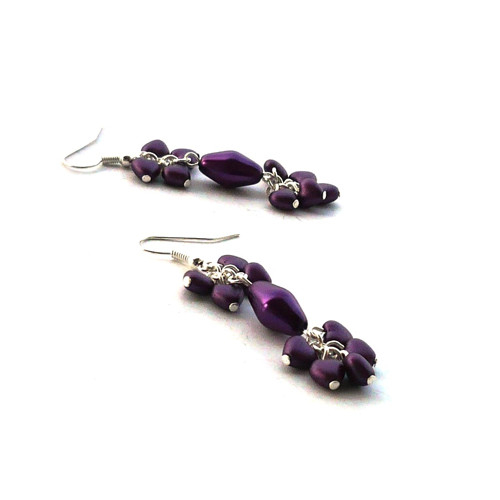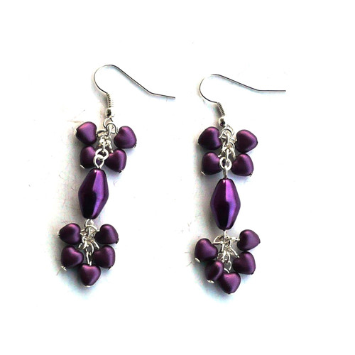 Náušnice jsou tvořeny z matných fialových voskovaných skleněných srdíček, doplněné o spojovací fialovou oválnou voskovanou perličku. Srdíčka jsou v chumlíčkách ve dvou "patrech".