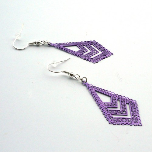 Náušnice jsou z fialového vyřezávaného kovového plíšku. Náušnice jsou lehoučké, příjemné a módní.