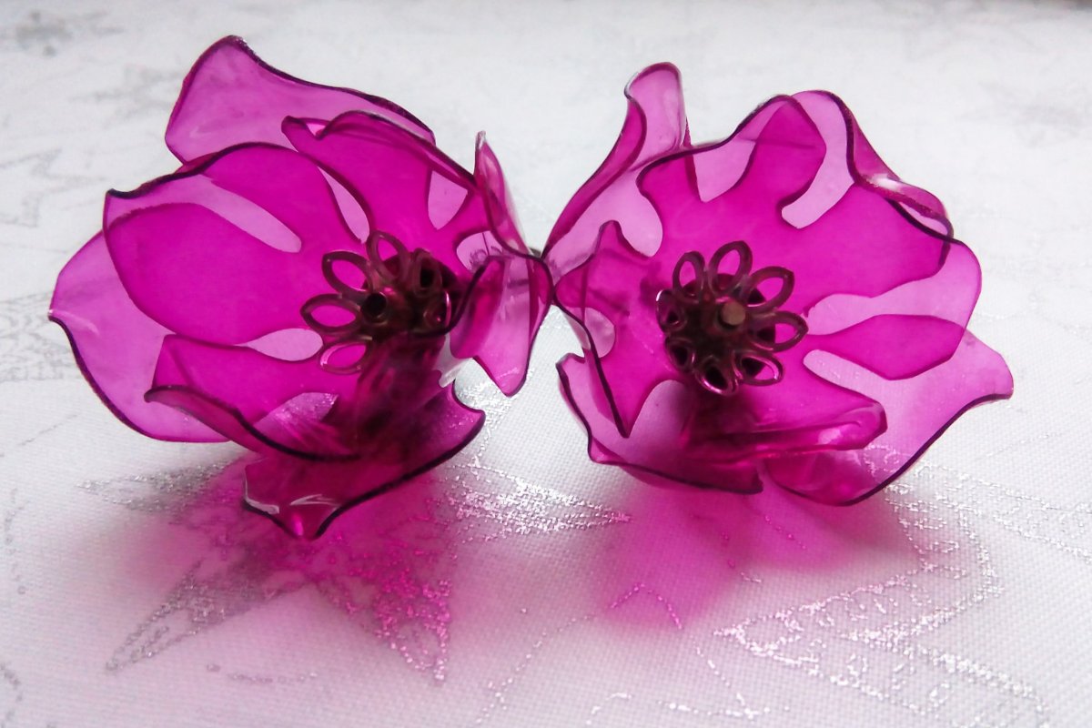 Ručně vyrobeno dle vlastního návrhu z recyklovaných PET lahví a bižuterních komponentů.