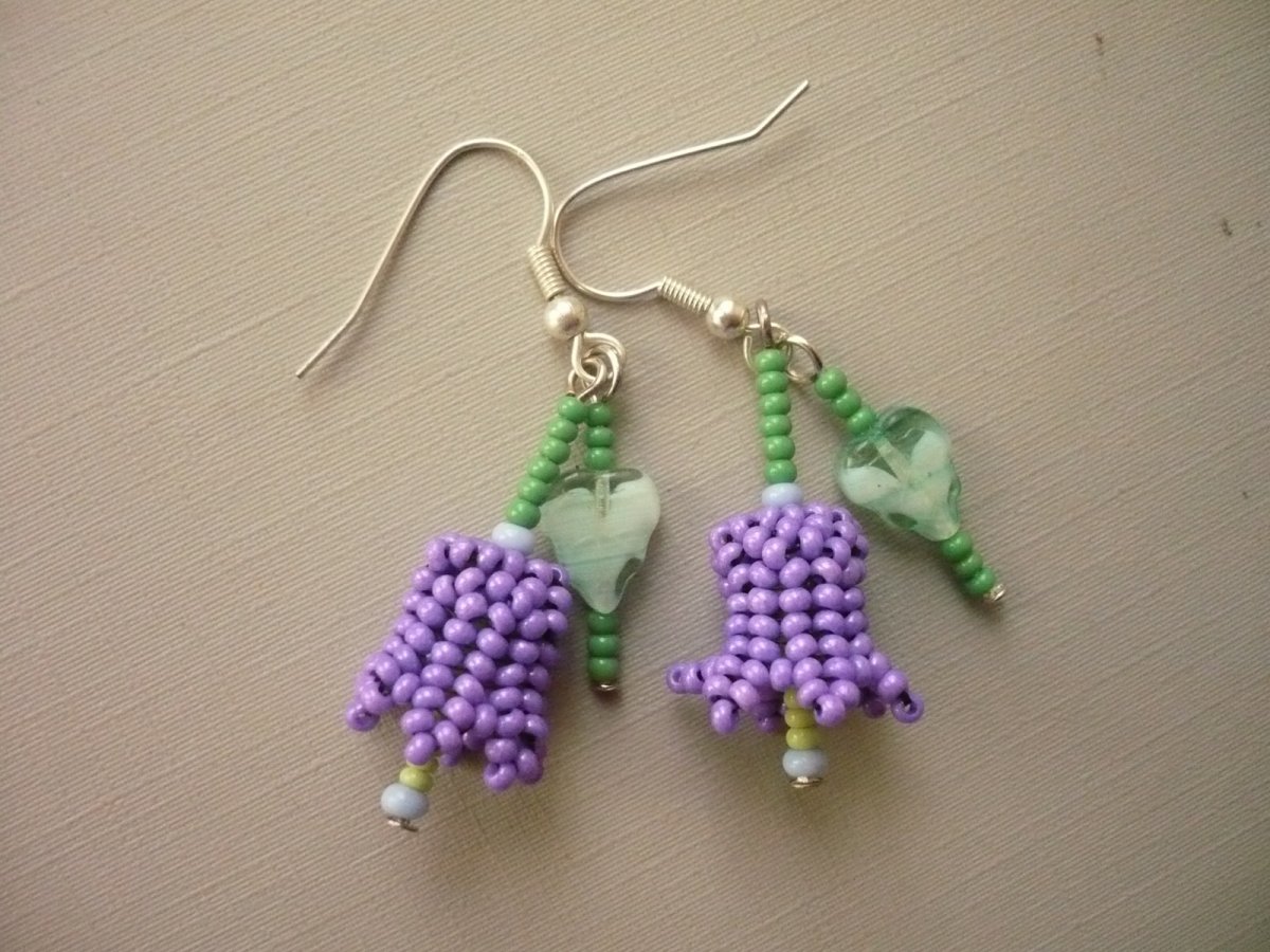 Náušnice z rokajlových korálků, doplněno o skleněné mačkané korálky. Zavěšeno na afroháčku v barvě stříbra. Délka 3,5 cm bez háčku.