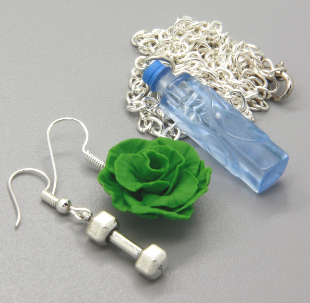 na stříbrných bižuterních afroháčcích, velikost motivu činky a salátu kolem 2 cm, silikonové zarížky přidávám automaticky,