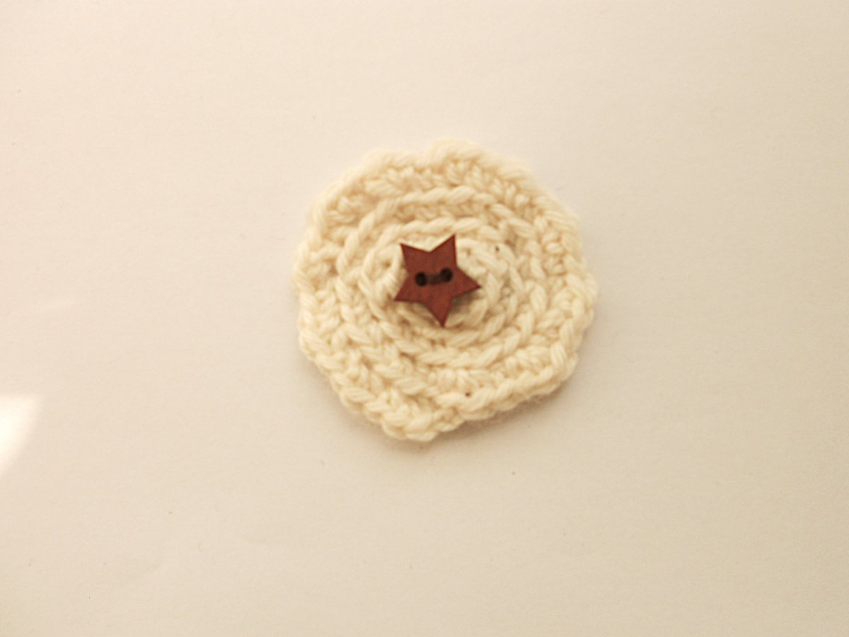 Háčkovaná brož s hvězdou, průměr 6 cm, přišitý brožový můstek z bižuterního kovu.