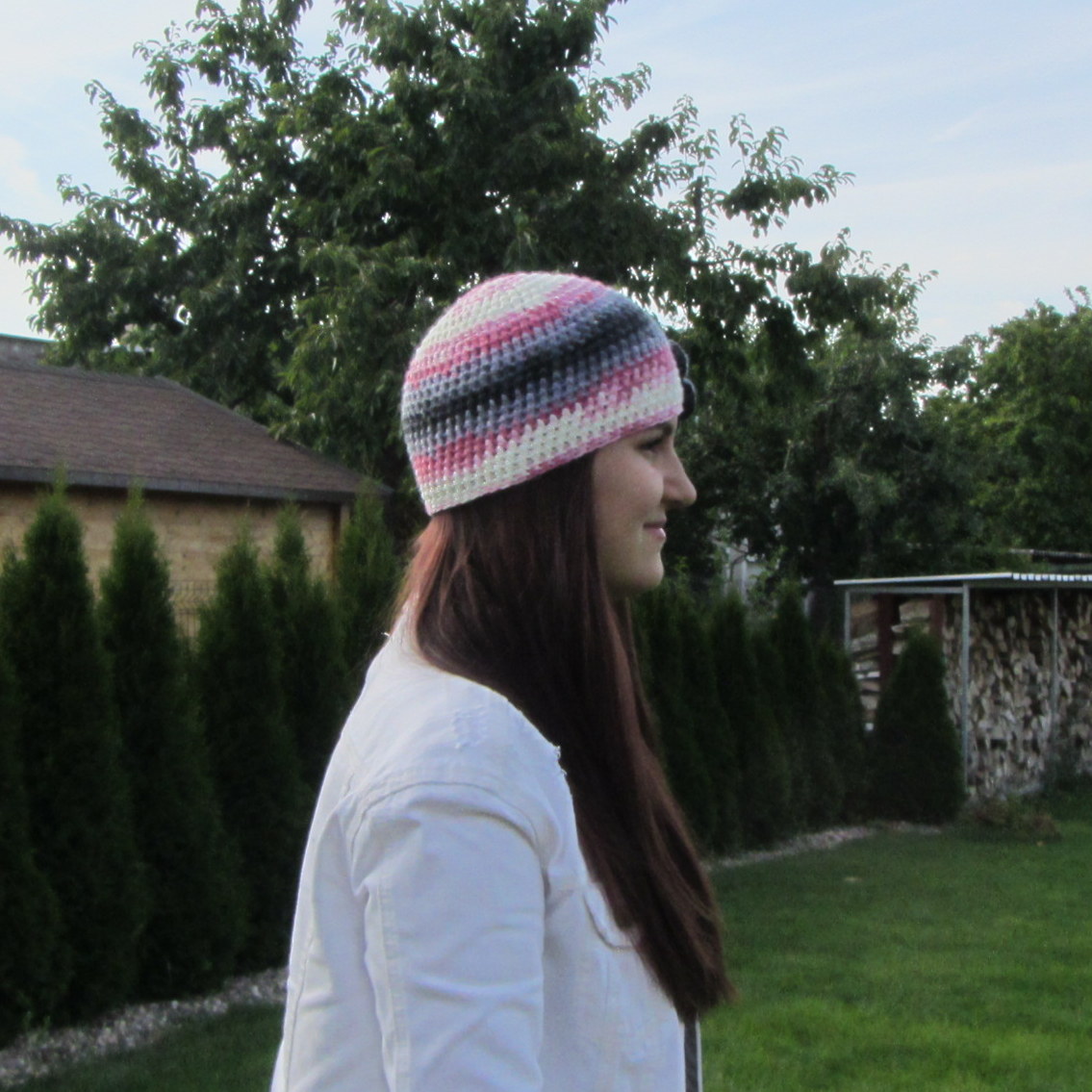 růžové, světle a tmavě šedé. Čepka je příjemně měkoučká a ozdobená
