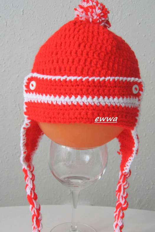 Háčkovaná ušanka s bambulkou, obvod 40 - 46 cm, na výšku 15 cm,