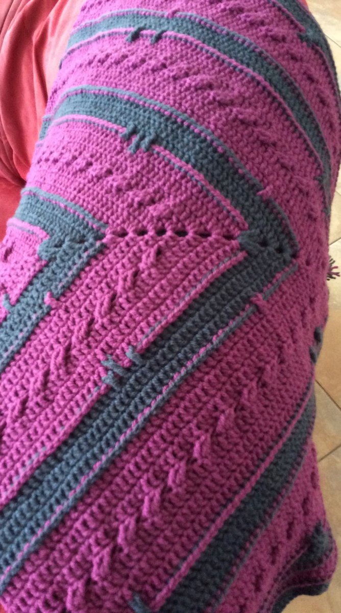 Ručně háčkovaná velká deka tvořená dle vlastního návrhu z příjemně hřejivých certifikovaných akrylových přízí v barvě antracit a fialové světlejší purpurové. Vzhled efekt 2 v 1, plastický vzor +,... Rozměr 145 x 115 Cm, vhodné k zachumlání k televizi, venkovními posezení nebo do postýlky. 1055g