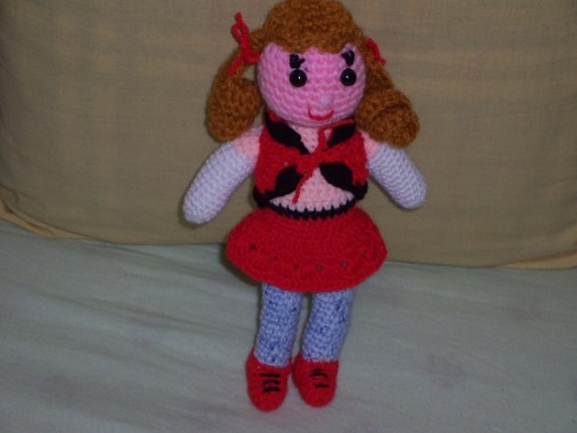 háčkovaná panenka velikosti 15-18 cm, z příjemného materiálu, dobře se udržuje,dá se prát .
