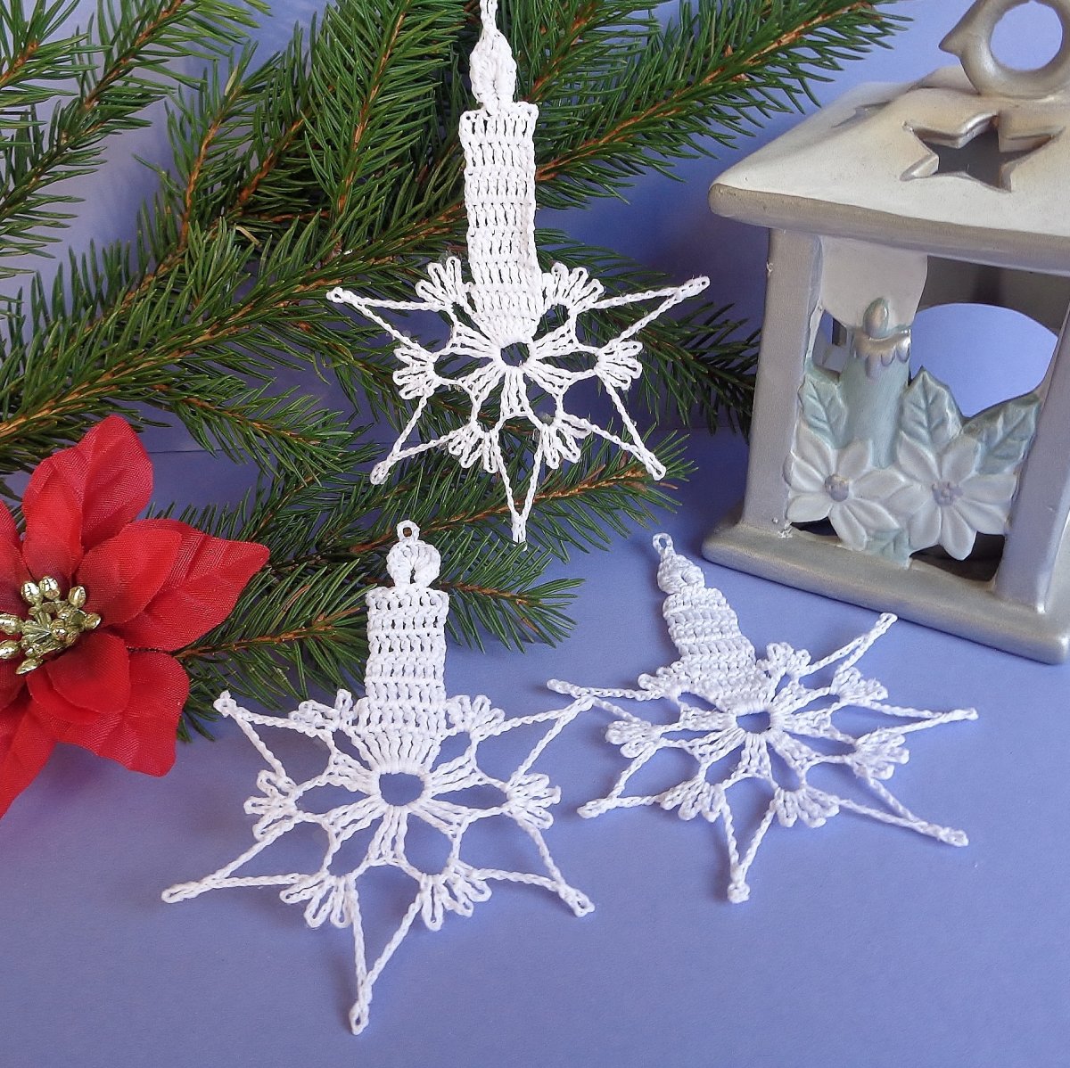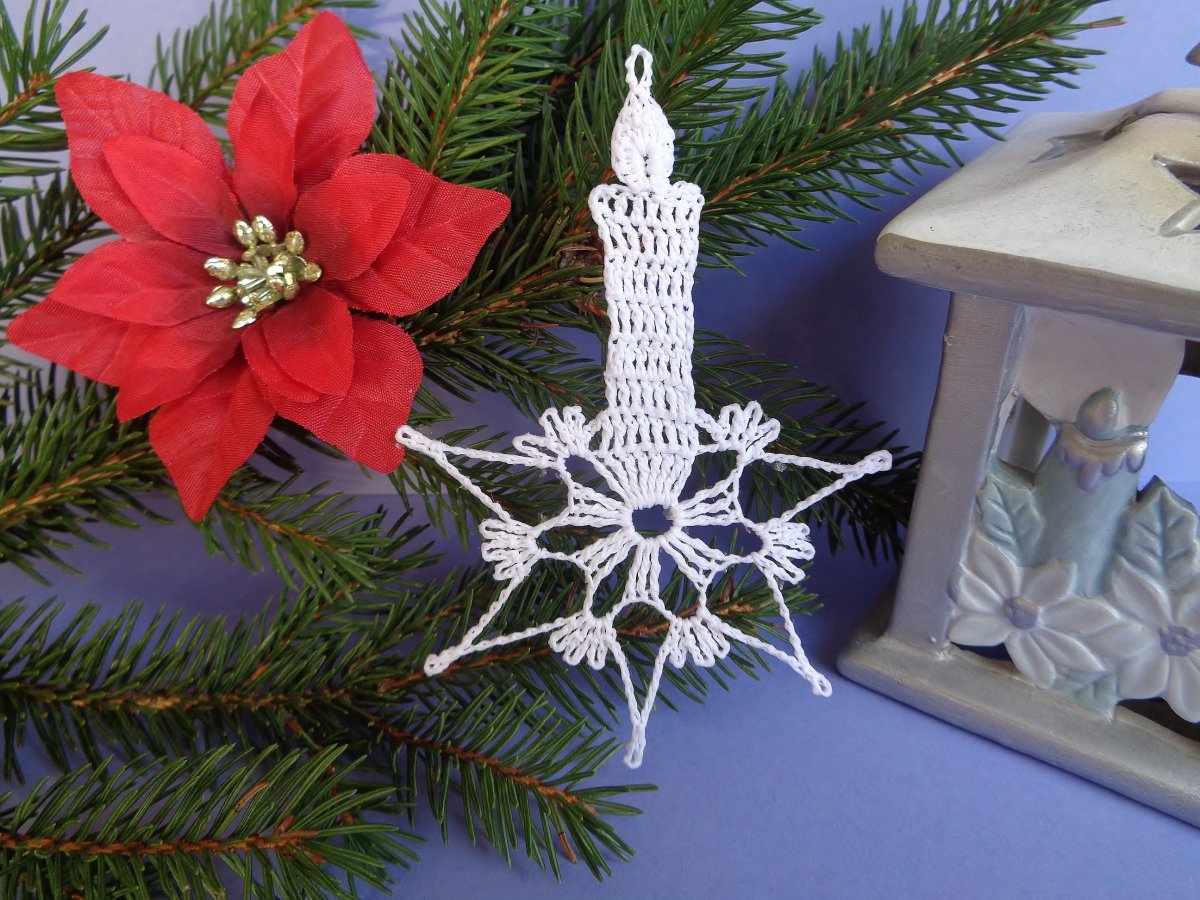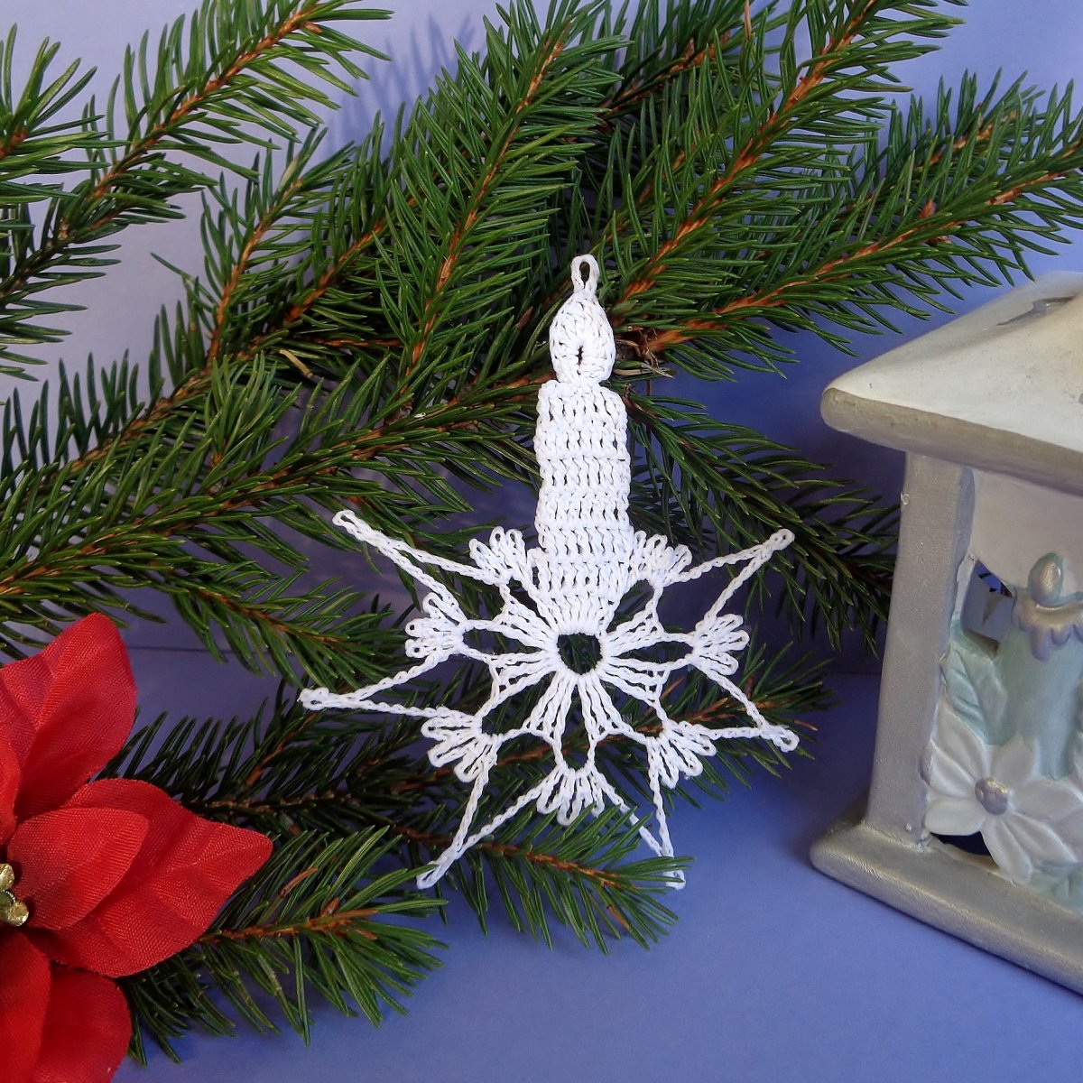 Háčkovaná svíčka ze slabé, 100% bavlněné příze, je vypnutá a silně naškrobená, takže krásně drží tvar. Barva bílá.