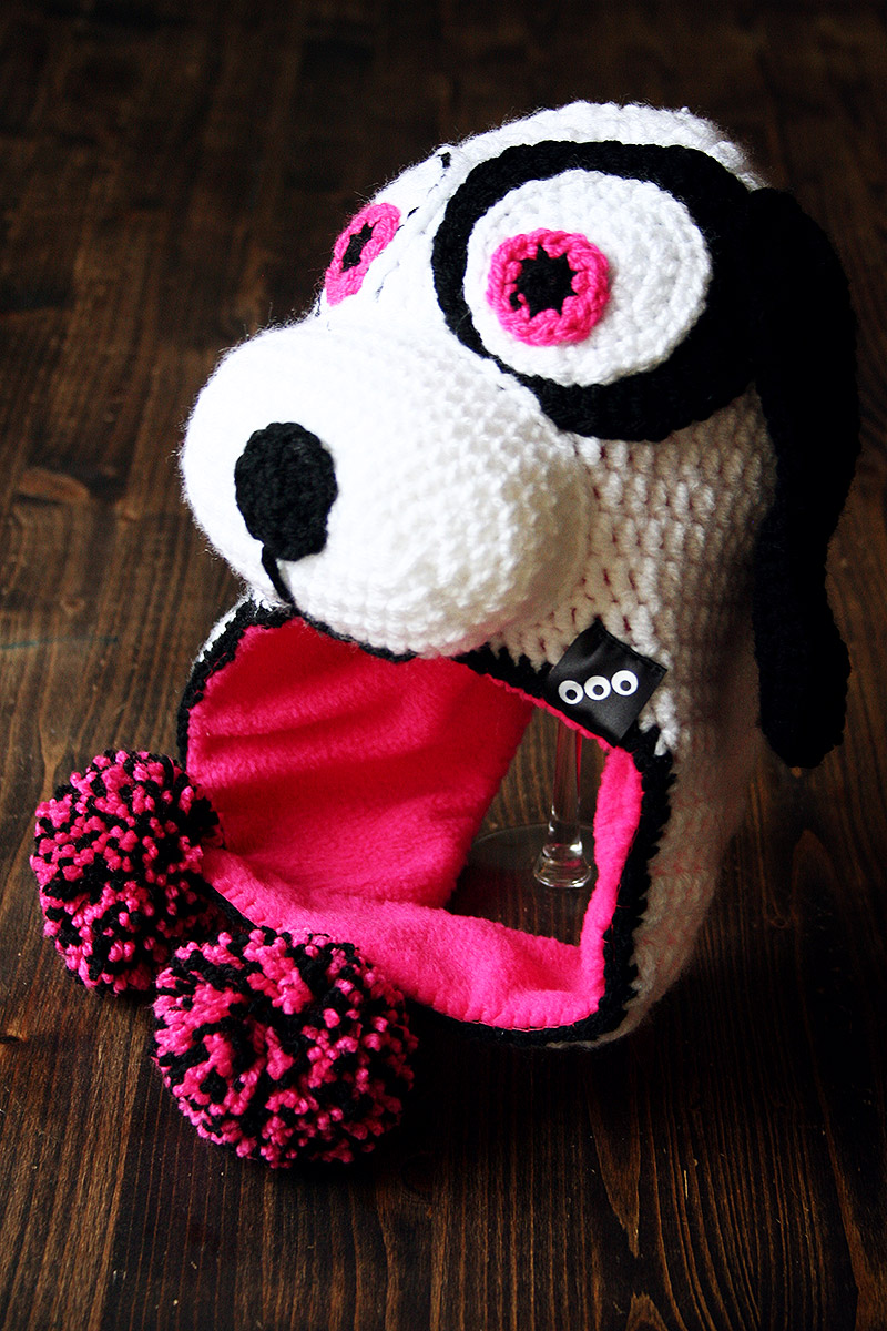 Háčkovaná ušanka Pejsek - podšitá fleecem