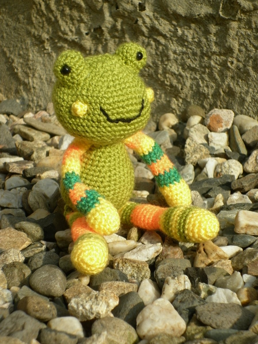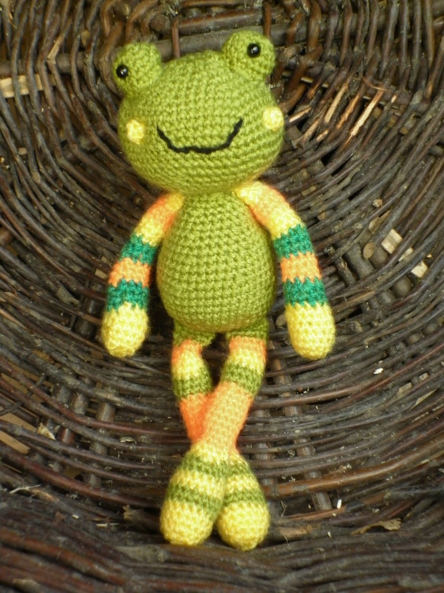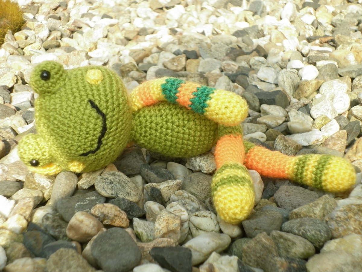 Do rodiny větších háčkovaných hraček přibyla žabička Františka.