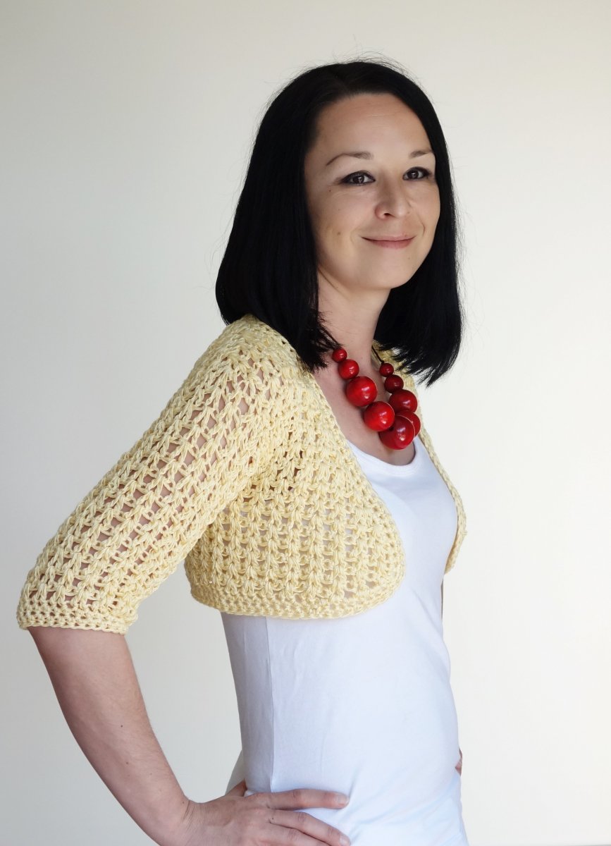 Letné háčkované bolerko v nežnej vanilkovej farbe.