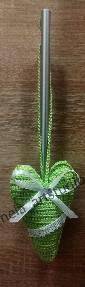 Ručně háčkované dekorační srdce na zavěšení v žlutozelené barvě! Ideální jako stylový doplněk vašeho interiéru nebo jako originální dárek.