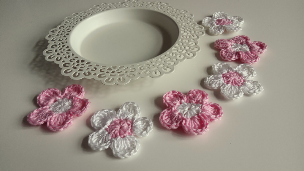 Háčkované kytičky 6ks, průměr 4,5-5cm