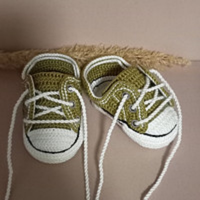 Ručně háčkované tenisky s délkou chodidelka 9 cm. Háčkované z akrylové příze.
