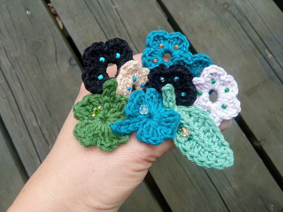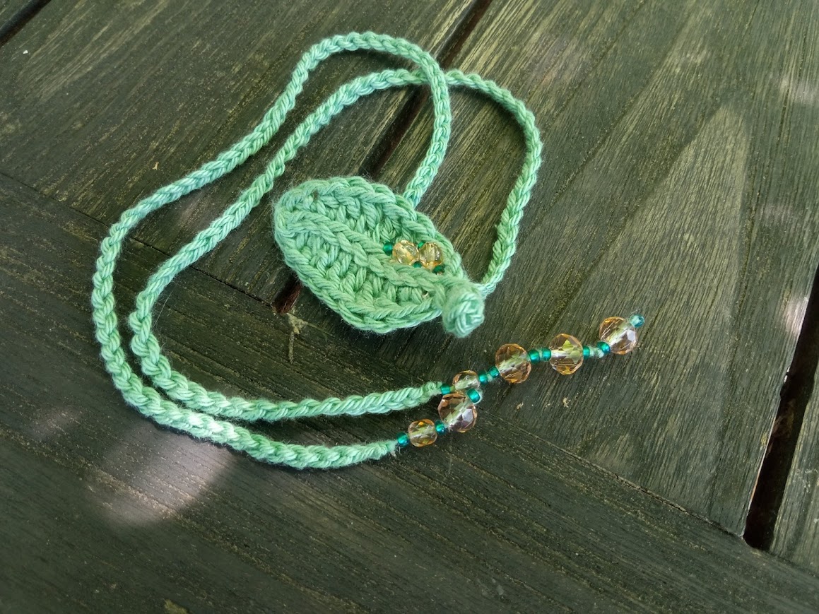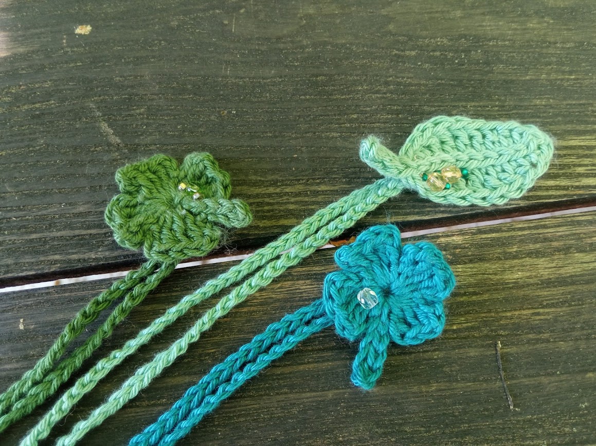 Háčkované záložky do knihy. Z bavlněné příze dozdobené skleněnými korálky.