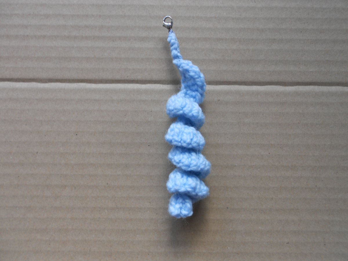 Háčkovaný přívěsek na klíček, kabelku, batoh a podobně. Velikost 13cm, šířka 2,5cm. Připnutí přes karabinku. Doporučuji ruční praní.