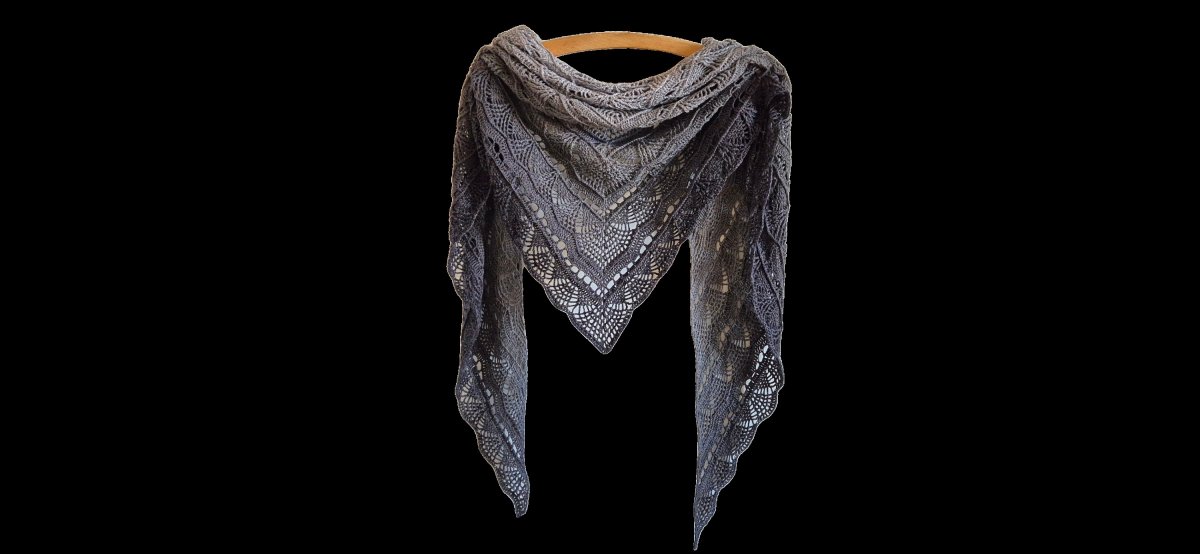 Šátek je v elegantní šedo černé barvě a velikost šátku je 208 x 145 x 80 cm.
