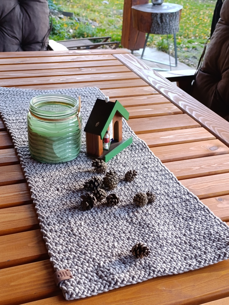 Ručně háčkovaný středový ubrus z bavlněných šňůr. Krásně doplní jídelní stůl. Můžete šetrně prát na 30°C a sušit nejlépe rozložené ve vodorovné poloze. Nedoporučuji sušit v sušičce.