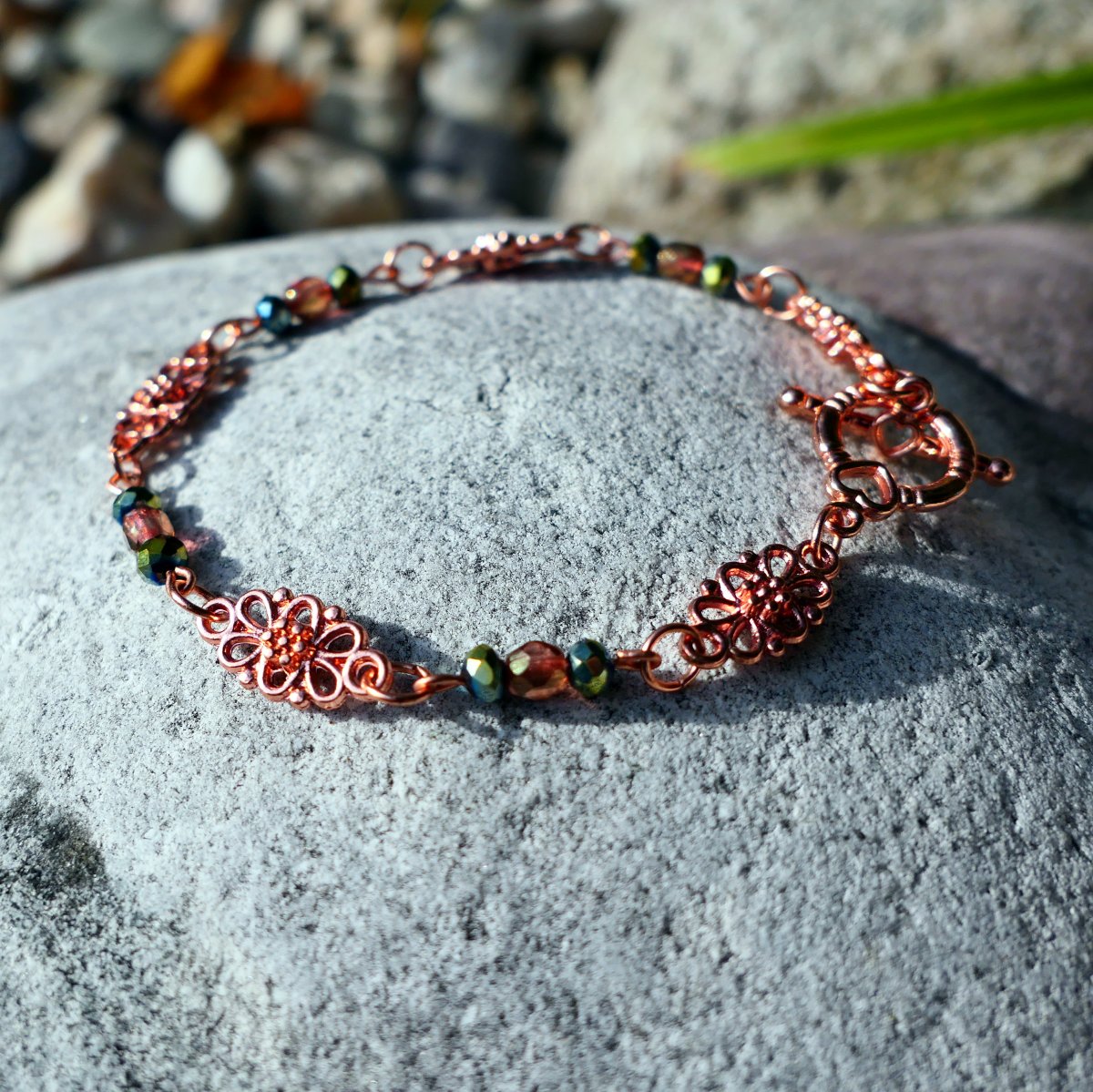 Ketlovaný náramek s ohňovkami. Zapínání americké. Komponenty rosé gold.