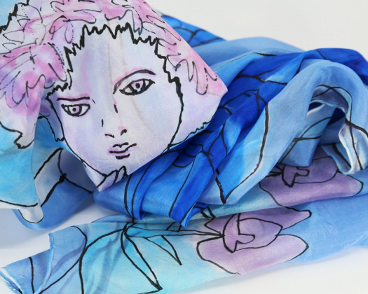 Šála ručně malovaná profesionálními napařovacími barvami na přírodní 100% hedvábí - Ponge 5.