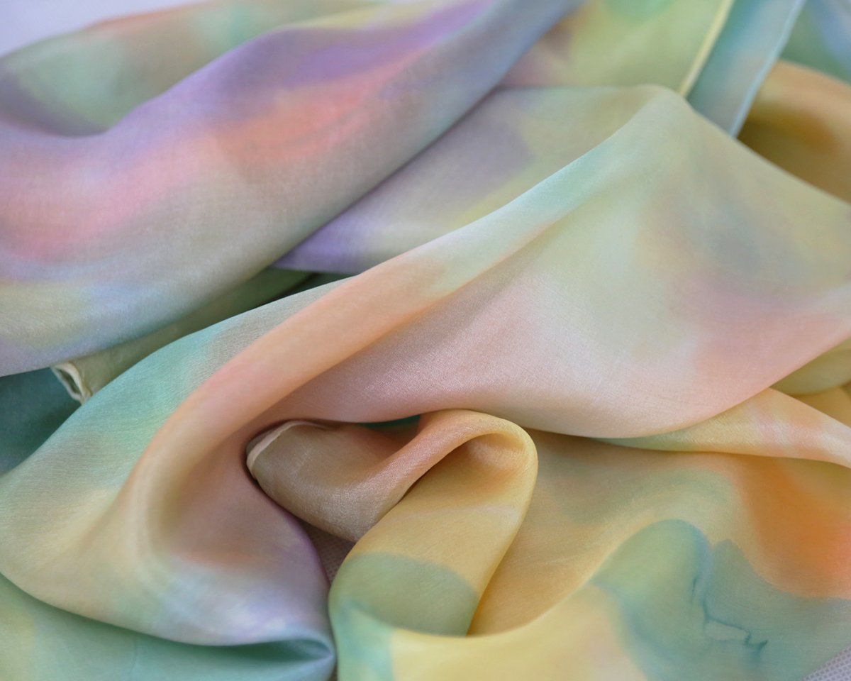 Ručně malovaný šátek profesionálními napařovacími barvami na přírodní 100% hedvábí - Ponge 5.