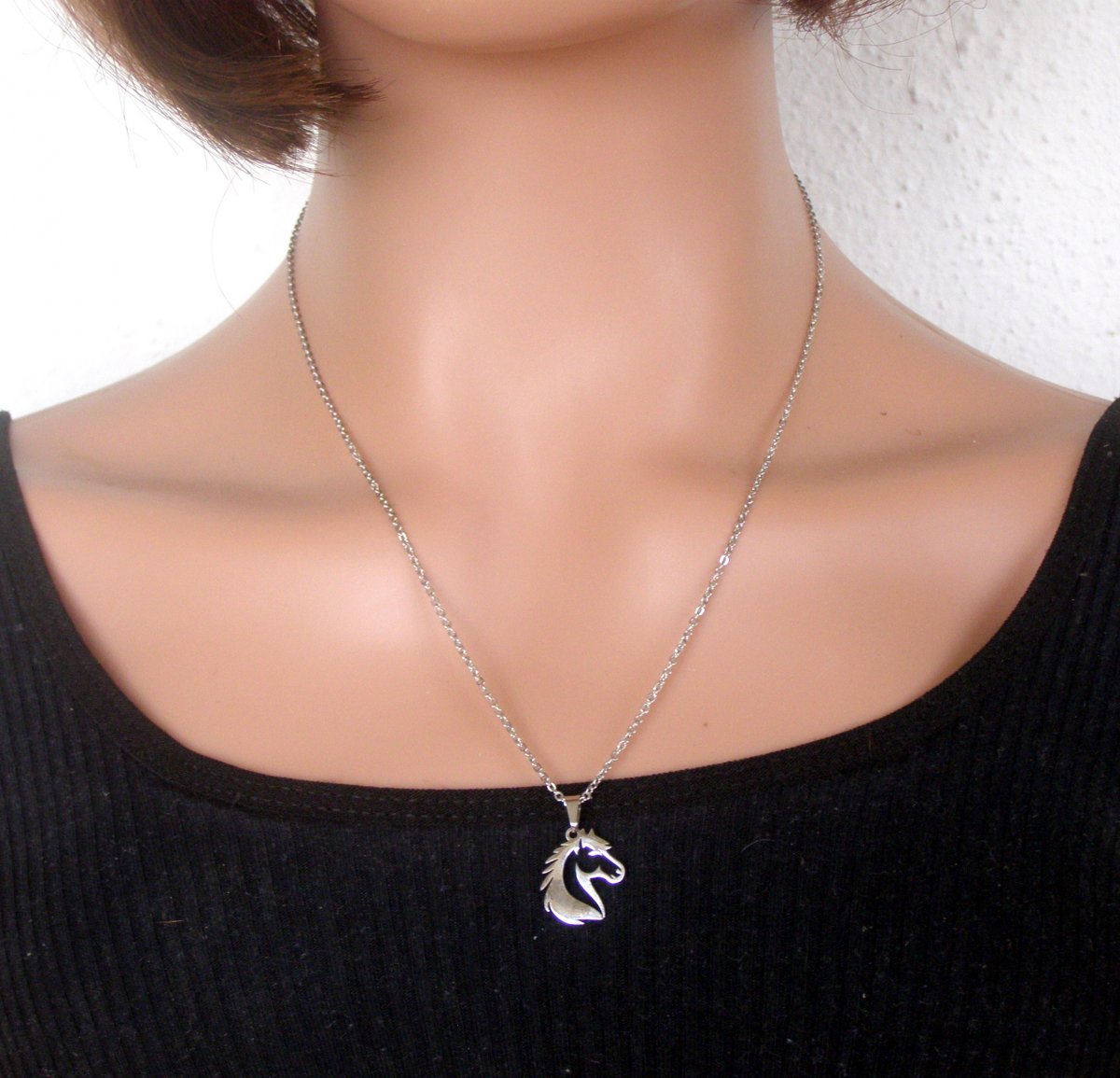 Náhrdelník je vyroben z řetízku z chir. oceli a přívěsku hlava koně.
