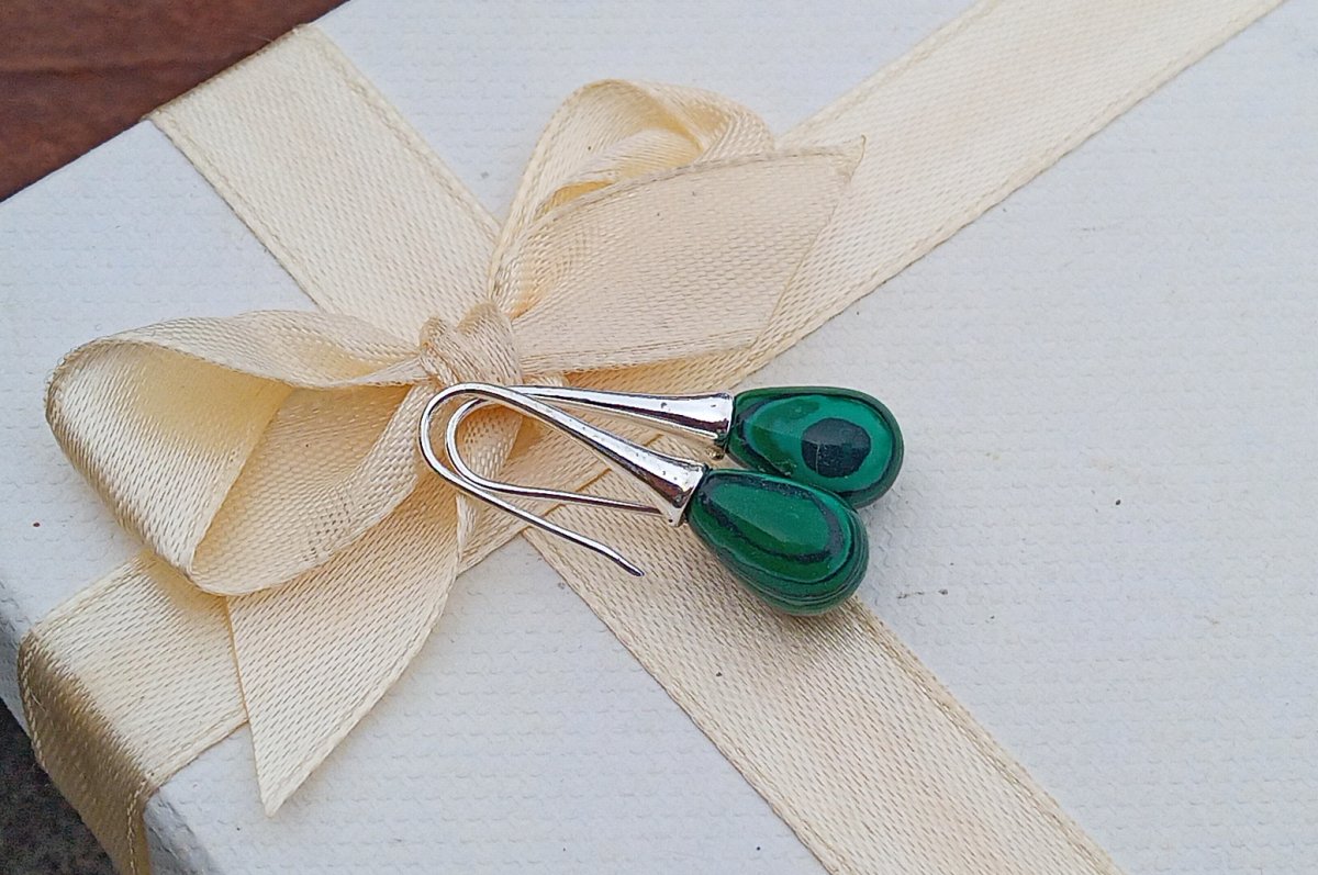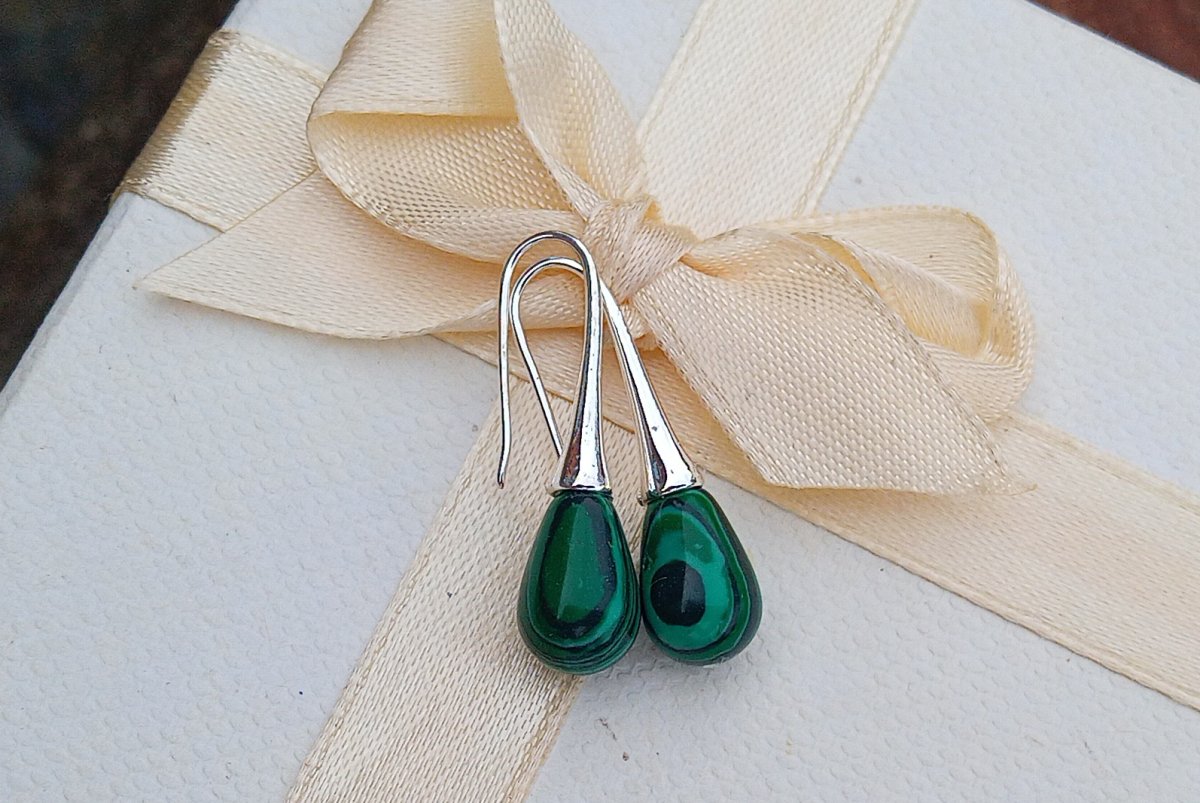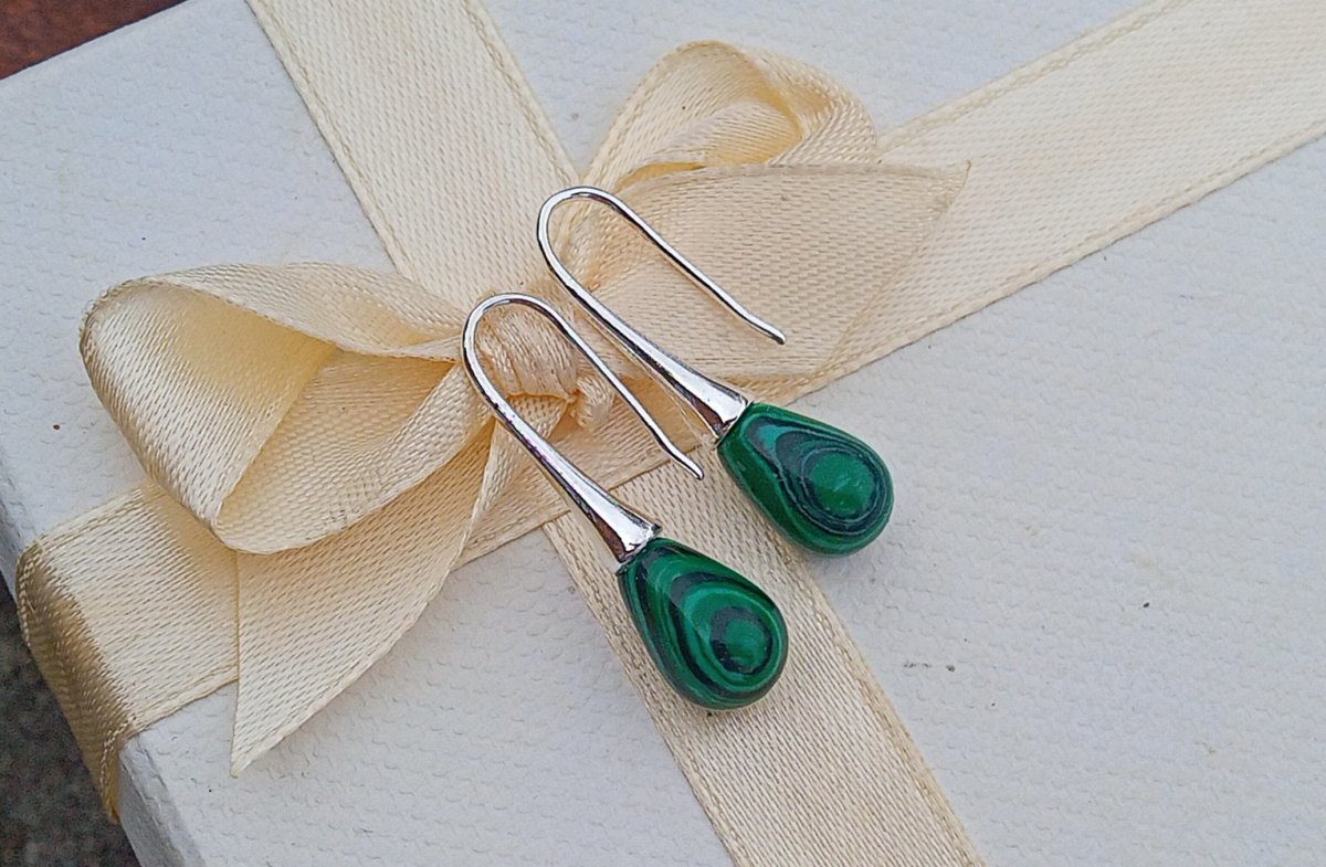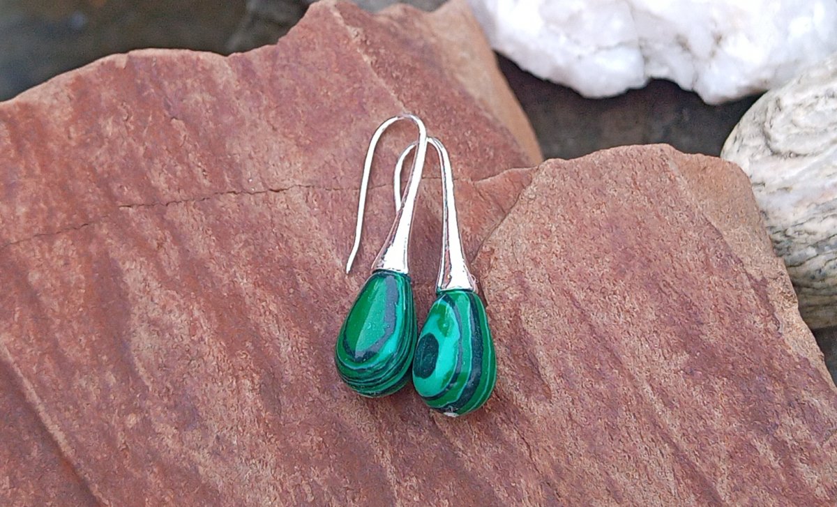 Dodejte svému stylu nádech luxusu a tajemna. Tyto náušnice v sytě zelené barvě s typickou kresbou malachitu jsou nepřehlédnutelným doplňkem, který v sobě spojuje eleganci kapkového tvaru s fascinující krásou přírodních vzorů.