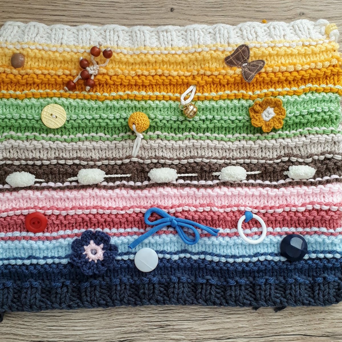 Napomáhá ke smyslové stimulaci, snížení nervového napětí, má uklidňující účinek na tzv. neklidné ruce a zároveň pomáhá procvičovat jemnou motoriku.Rukávník je upleten z nových nepáraných vln a jsou na něm naaplikované různé komponenty, které jsou velmi důmyslně přišity tak, aby se neuvolnily a nešly běžným používáním vytrhnout.
