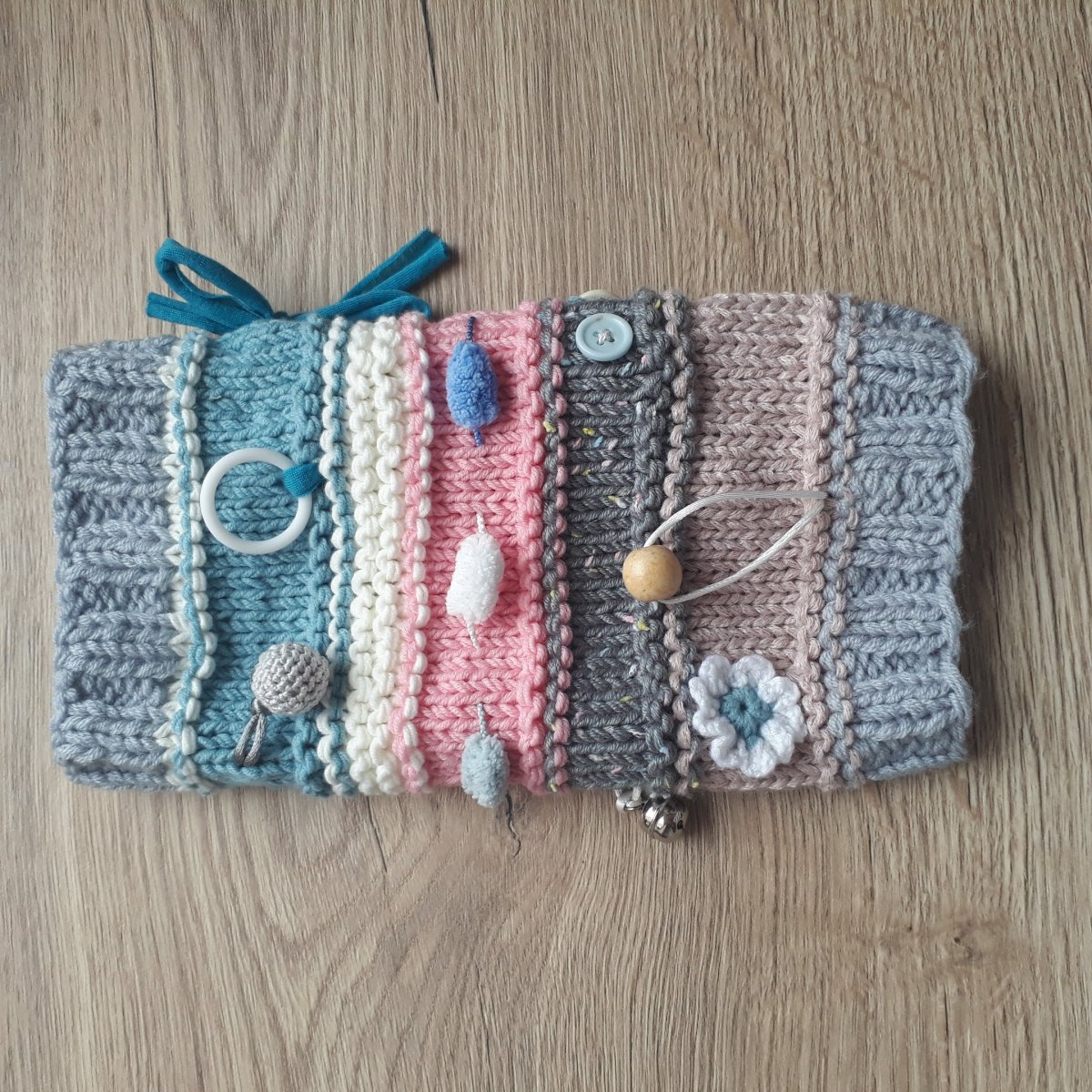 Napomáhá ke smyslové stimulaci, snížení nervového napětí, má uklidňující účinek na tzv. neklidné ruce a zároveň pomáhá procvičovat jemnou motoriku.Rukávník je upleten z nových nepáraných vln a jsou na něm naaplikované různé komponenty, které jsou velmi důmyslně přišity tak, aby se neuvolnily a nešly běžným používáním vytrhnout.