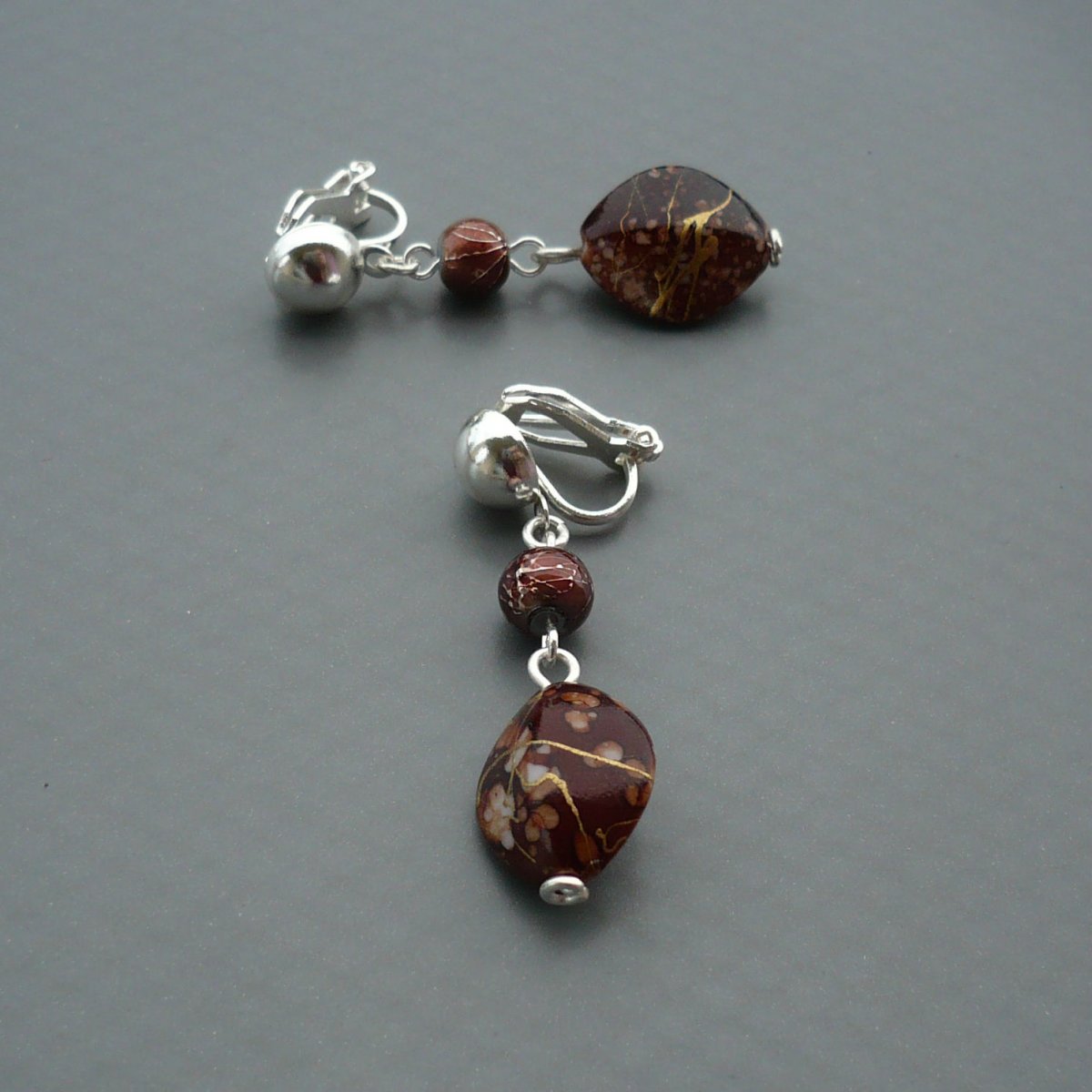 Hnědé propletené zlatou - klipsové náušnicee