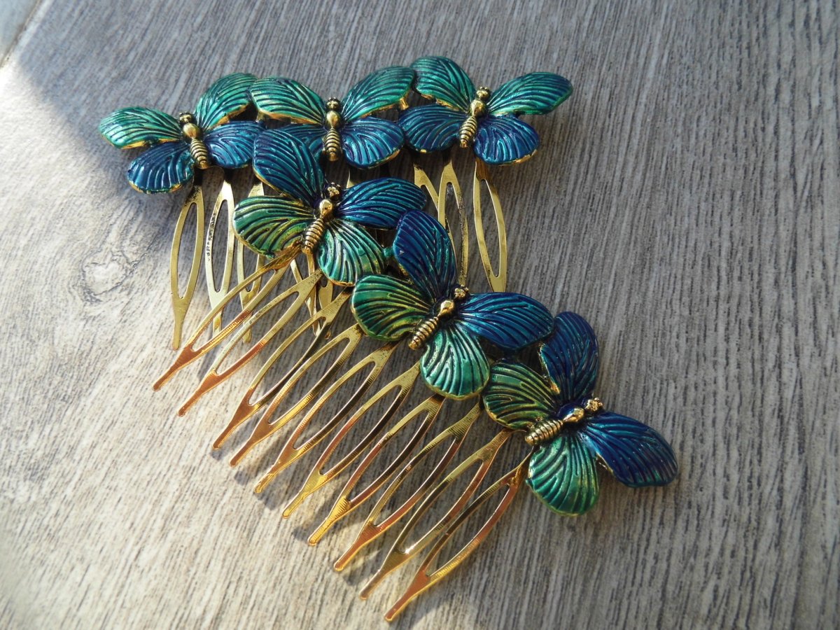 hřebínek do vlasů kovový 8x5cm, 10zubů,motýlci - dobarveno