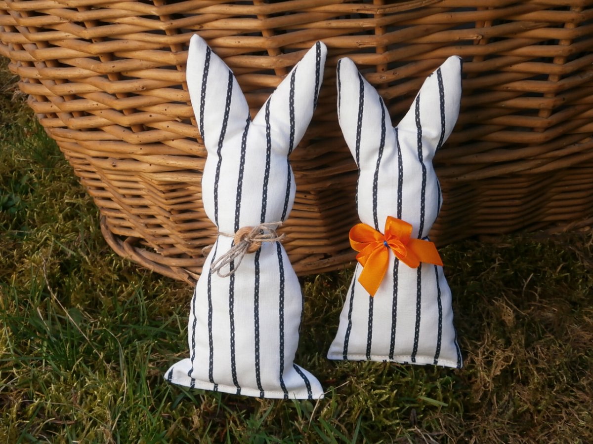 Jsem látkový zajíček přizdobím vám velikonoční ošatku,stůl či košíček.