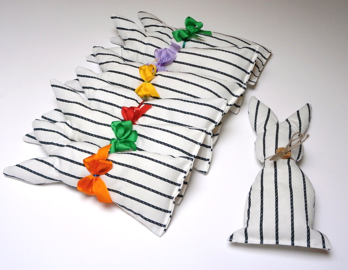 Jsem látkový zajíček přizdobím vám velikonoční ošatku,stůl či košíček.