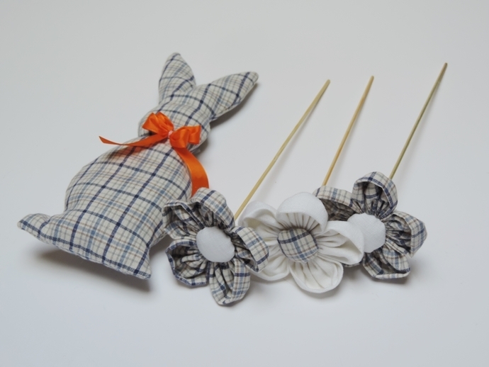 Jsem malý látkový zajíček v kostkovaném kabátku přizdobím Vám Velikonoční ošatku,stůl či košíček.