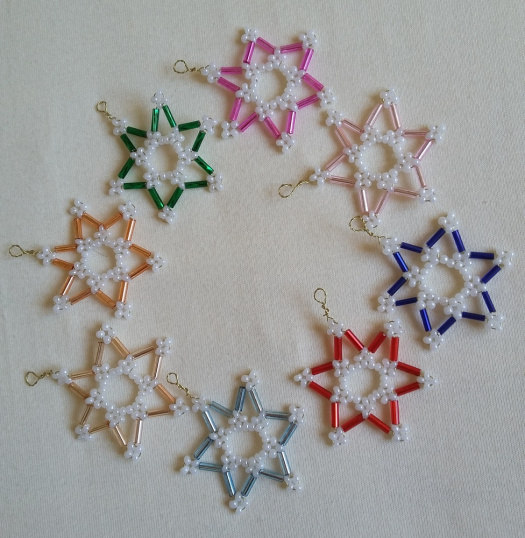 Vánoční hvězda z korálků jako ozdobička na stromeček velikosti 4 cm. Do poznámky napište o jakou barvu máte zájem.