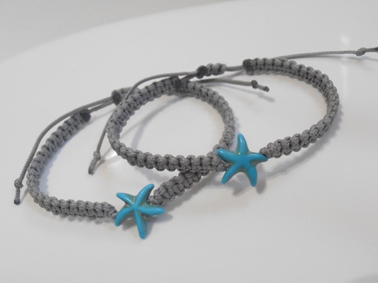Náramek je vyroben z šedé šňůrky a korálku ve tvaru hvězdice z minerálu Tyrkenit.