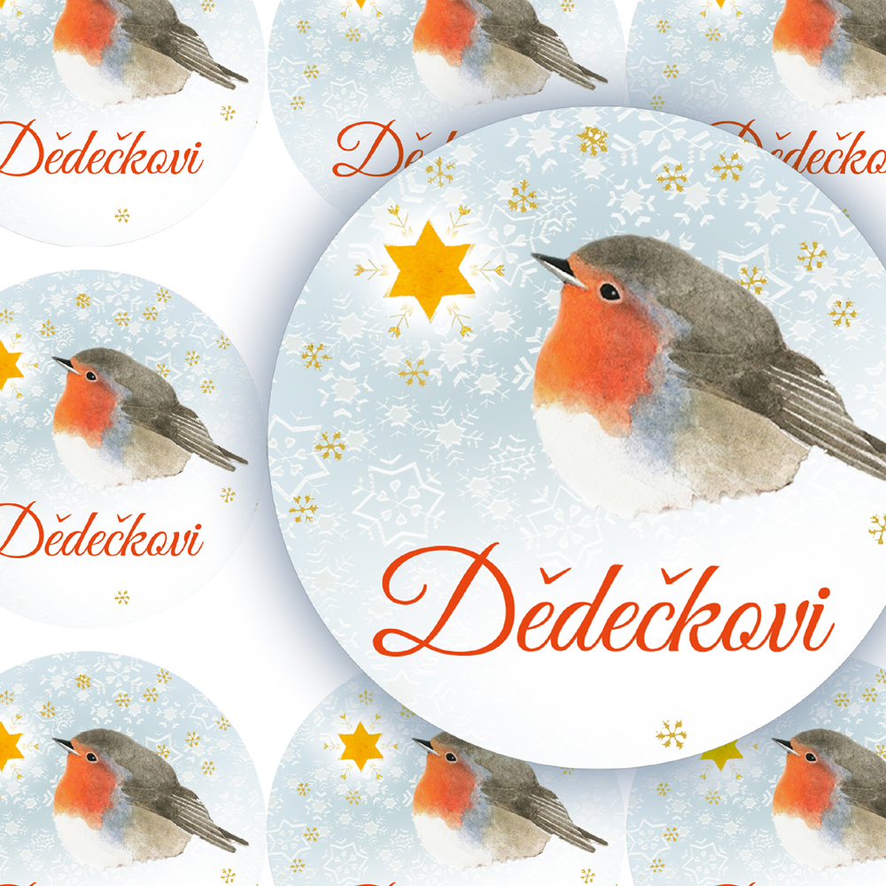 Autorské jmenovky - samolepky s motivy červenky a hvězdičky.