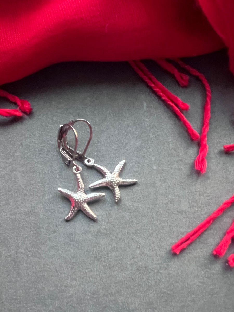 Náušnice s přívěskem mořské hvězdice cca 1,8 cm, komponenty z nerez oceli - vhodné pro alergiky. Uzavíratelný háček