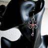 Tepané, antialergenní náušnice s broušenou kapkou růžového skla a korálkem rodonitu.