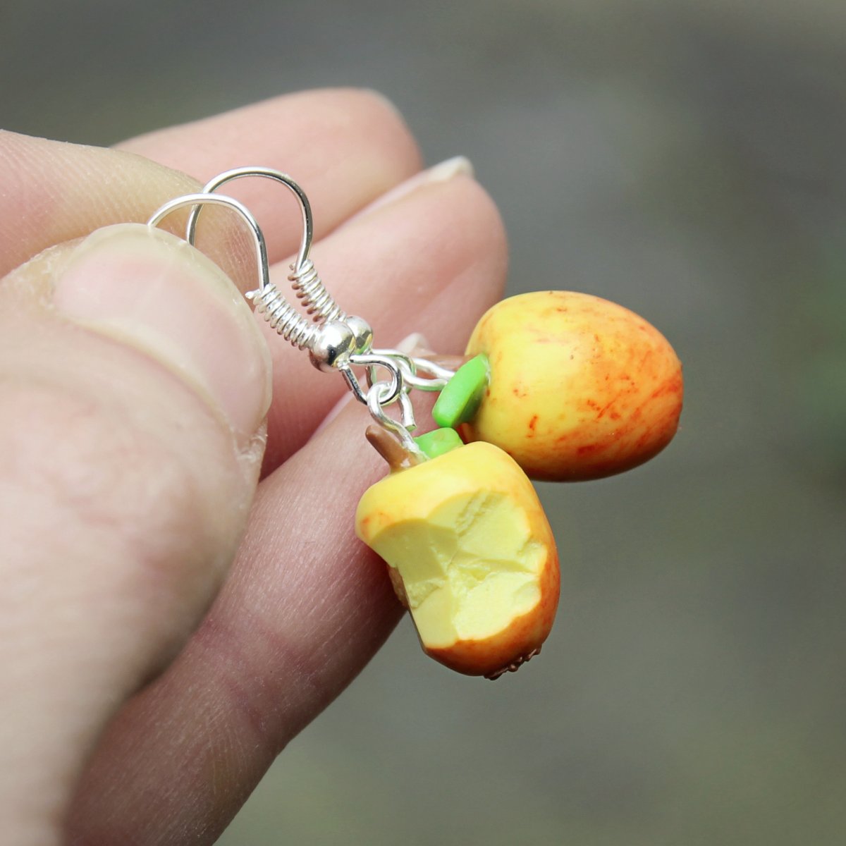 náušnice s jablíčkami z polymerové hmoty(cca 1,6x1,3cm).