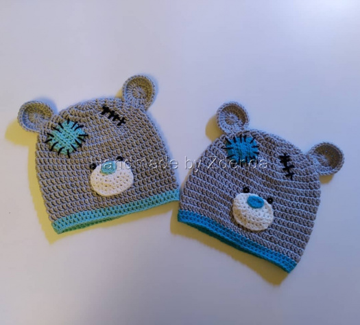 Háčkovaná čepička medvídek. Vyrobená z příze s atestem pro děti do tří let, antipilling úprava. Možná i jiná barevná kombinace. Velikost na přání